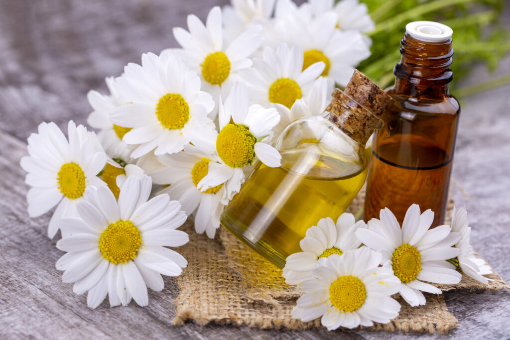 - Aceite esencial de manzanilla romana: La manzanilla romana tiene propiedades sedantes y puede ayudar a calmar los nervios y aliviar la tensión. Puede ser especialmente útil para personas que sufren de insomnio debido al estrés o la ansiedad. Se puede utilizar en un difusor o diluir en un aceite portador para masajear el cuerpo antes de acostarse.